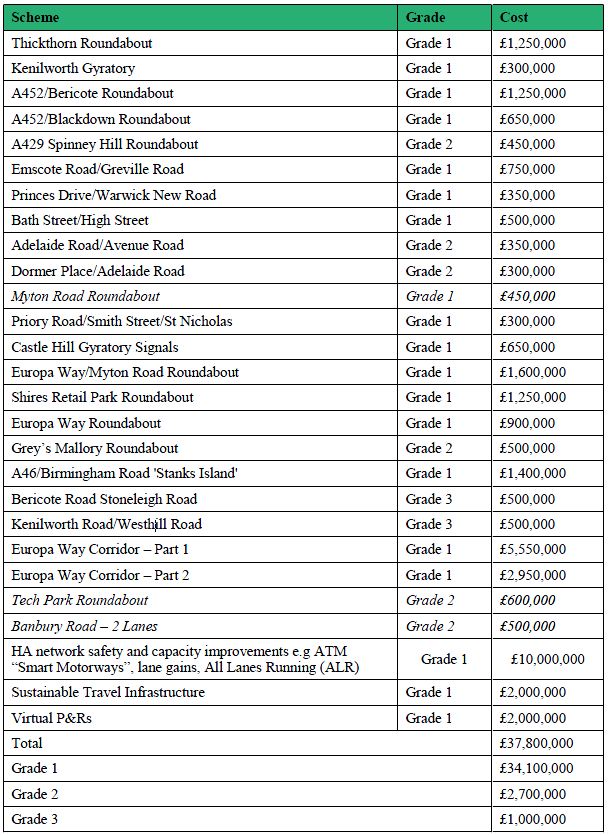 The STA work has identified broad areas which require mitigation schemes, as identified in the attached image (n.b. some isolated schemes will fall outside these broad areas). The attached image contains a plan identifying the Strategic Transport broad locations and a revised schedule for the associated infrastructure.