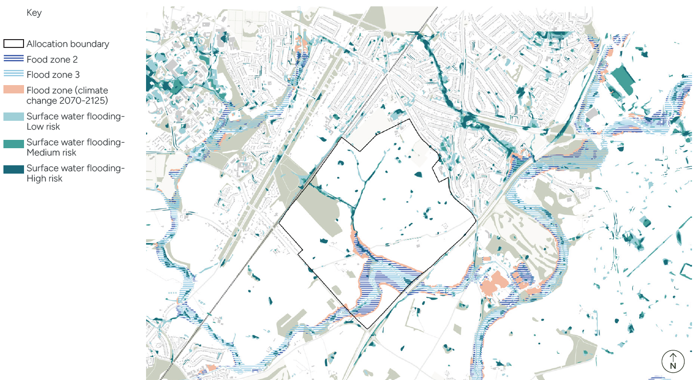 The flood risk from a range of sources, including fluvial and surface water, needs to be considered and addressed through the masterplan.