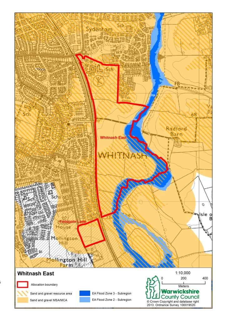 Our initial assessment indicates that the 'Whitnash East' allocation (see plan 1 as approximately 70% (40ha) of the site appears to be underlain by sand and gravel (based on the resource information supplied by the British Geological Survey). Therefore, a detailed minerals survey (complete with borehole evidence) is required undertaken to establish the volume and quality of the material and, in consultation with WCC and the mineral industry, whether prior extraction in advance of the development is "practicable and environmentally feasible" (para 143, bullet point 5 of the NPPF). Such prior extraction may offer flood attenuation/alleviation and biodiversity opportunities given that the site falls within EA flood zones 2 and 3.